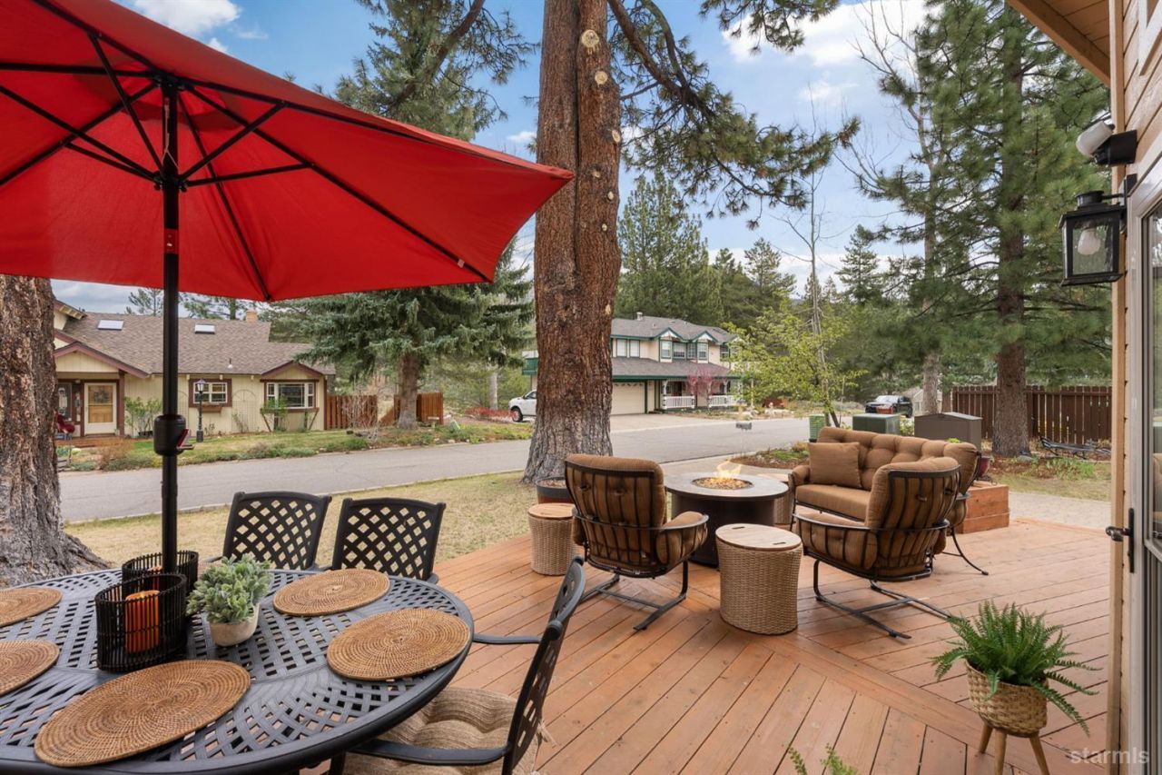 Perched in a quiet, highly desirable flat-land neighborhood in the county near the meadow, this refined single-story residence offers 3 bedrooms, 2 baths, and captivating unobstructed views of the meadow and mountains from the front deck, made possible by underground utilities that preserve the natural beauty of the setting.Inside, soaring vaulted ceilings, plantation shutters, stainless steel appliances, and a spacious center island in the kitchen set the stage for effortless entertaining and everyday comfort. The open-concept design is anchored by a dramatic stacked-stone fireplace, creating a warm yet elevated focal point in the living space. The serene primary suite features a private en-suite bath and an impressive walk-in closet, while the guest bedrooms enjoy convenient access to the backyard and rear deck, where sweeping mountain views invite quiet relaxation. Enhancements such as a wine closet, on-demand water heater, newer Bryant furnace, and one-car garage further elevate the home's appeal.The beautifully landscaped grounds are equally impressive, with mature perennial flower beds, a sprinkler system, paver driveway, bear box, and two Tuff Sheds, including one ideally suited for a workshop or creative space. A separate side entrance adds flexibility and convenience, with access to the back bedroom.Perfectly located near hiking, mountain biking, and world-class ski resorts in South Lake Tahoe, with easy access to downtown dining and entertainment, this exceptional property offers a rare opportunity to enjoy mountain living at its finest.