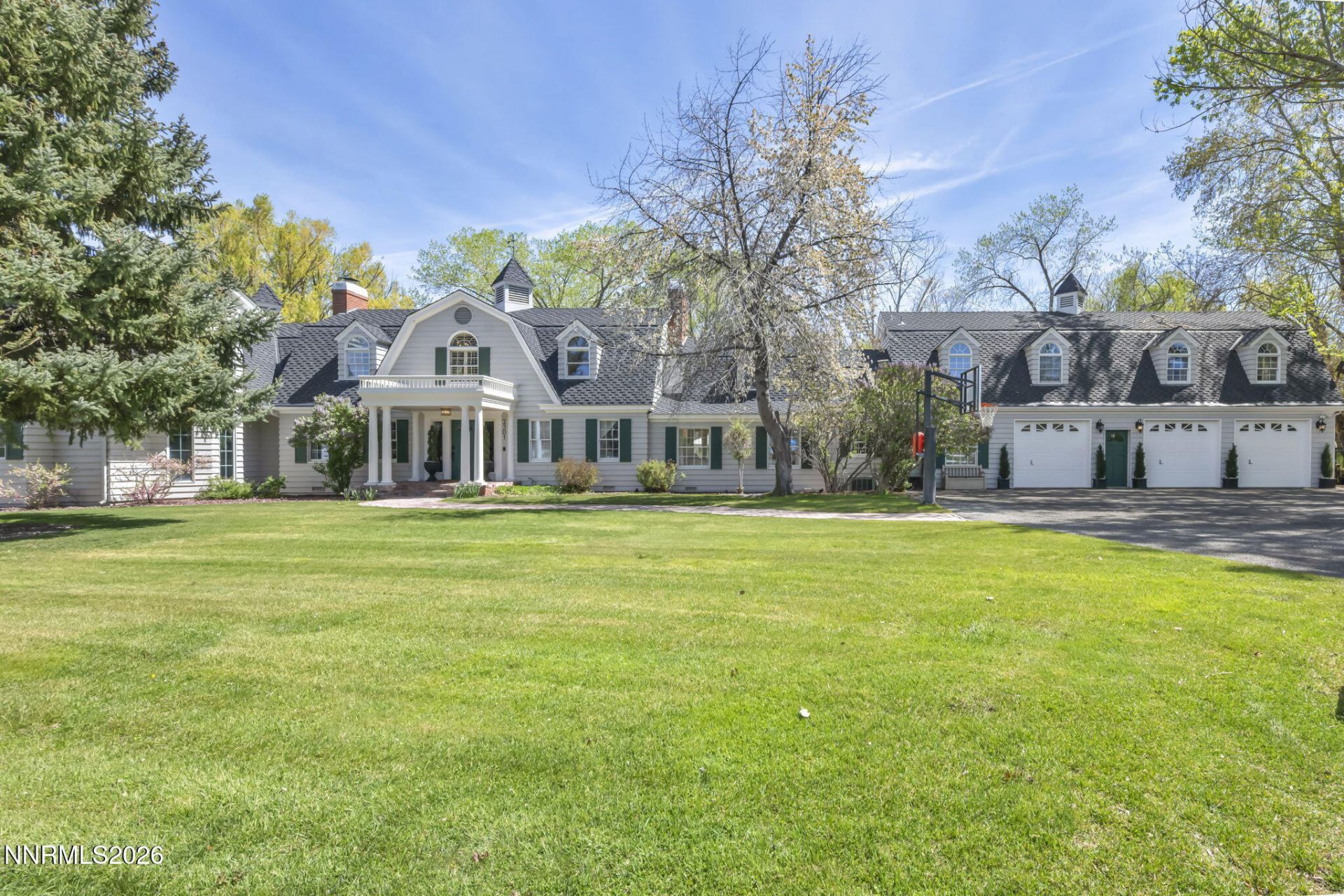 Behind a private tree lined drive in Holcomb Ranch lies a rare Reno legacy estate offering acreage, water rights, privacy and central location. Set on 3+ gated acres with 11.36 acre feet of valuable water rights, this 6 bedroom 6.5 bath Cape Cod inspired property delivers refined living with true ranchette functionality in the heart of Reno, minutes to equestrian facilities, shopping, dining, Reno Tahoe International Airport, and a short drive to Lake Tahoe and world class skiing. A spring fed pond and year round creek enhance the park like setting with mature trees, irrigated pasture, fruit trees and open space suitable for horses, livestock, recreation or future expansion. The home underwent major remodels in the 1970s and 2000s blending classic architecture with modern comfort. Hardwood floors, natural light and multiple gathering spaces support both entertaining and daily living. The kitchen features Bosch and Thermador appliances, double ovens and gas cooking. Engineered plans for an expanded layout with dual oversized islands are included in the sale. The primary suite offers a sitting area, attached office, walk in closet, secondary closet and dual bathrooms including an updated spa inspired bath. Additional ensuite bedrooms provide privacy and flexibility. Outdoor amenities include pool, hot tub, sauna, outdoor kitchen, basketball court and tree house. A remodeled guest house with its own garage offers space for guests or multigenerational living and is not included in main square footage. Natural gas, city sewer, private well, irrigation, RV parking, oversized 5 car garage and whole house generator provide infrastructure and security. Acreage with established water rights and this level of central Reno access is increasingly rare. A private compound, equestrian estate and long term land investment in one of Reno's most established neighborhoods.
