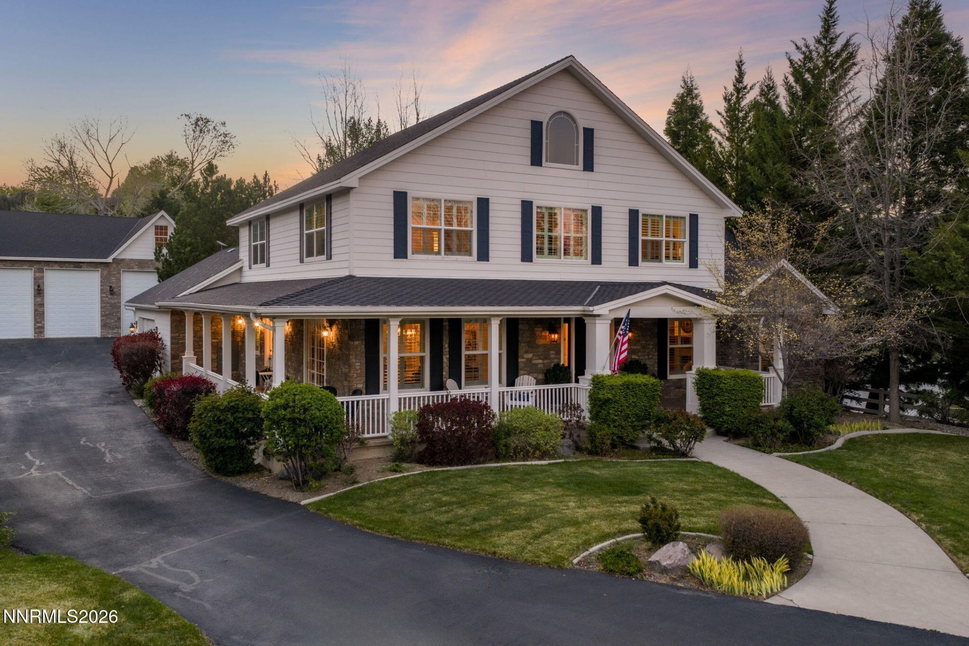 Set along one of Reno's most oppulent and sought-after streets, this exceptional custom-built luxury farmhouse in Reno, NV offers a rare blend of privacy, scale, and timeless design. Positioned on a full one-acre estate, the property delivers the lifestyle buyers dream about, where space, beauty, and intention come together effortlessly. A welcoming wraparound porch creates a true sense of arrival, perfectly framing morning coffee, golden hour sunsets, and long Northern Nevada evenings. The home's layout is both refined and functional, offering distinct spaces while maintaining an effortless connection throughout. On the main level, a private parlor room and formal dining room set the tone, ideal for hosting or creating quiet, intentional moments. The eat-in kitchen opens seamlessly into the family room, anchored by a warm fireplace and framed by expansive glass doors that invite natural light and connect beautifully to the outdoor living spaces. The main-level primary suite is complete with a beautifully integrated private sitting room or office retreat, perfect as a nursery, workspace, or quiet lounge extension. A thoughtfully placed powder bath completes the main floor. Upstairs, the layout continues to impress with two en-suite bedrooms, offering comfort and privacy for family or guests, along with two additional bedrooms and one additional bathroom, creating a functional and flexible upper-level wing. The fully finished lower level expands the home's livability even further, offering a versatile recreation and lounge space ideal for entertaining, media, fitness, or multi-generational living. Thoughtfully designed to feel like an extension of the home rather than a basement, it presents endless opportunities to tailor the space to your lifestyle. Designed for both everyday living and versatility, the property features an expansive ~2,000 sq ft oversized garage with RV doors, a half bathroom, and an upper-level attic room, ideal for a workshop, gym, or creative studio. In addition, a two-car attached garage enhances everyday ease and accessibility. Outdoors, the full acre unfolds into a private retreat where a built-in outdoor kitchen, fire pit, and hot tub create an effortless indoor-outdoor lifestyle. This is more than a home. It's a rare opportunity to own on Juniper Hill in Reno, Nevada, where luxury properties, acreage, and architectural character rarely come to market. A setting that feels like it belongs in The Notebook - timeless, romantic, and impossible to replicate.