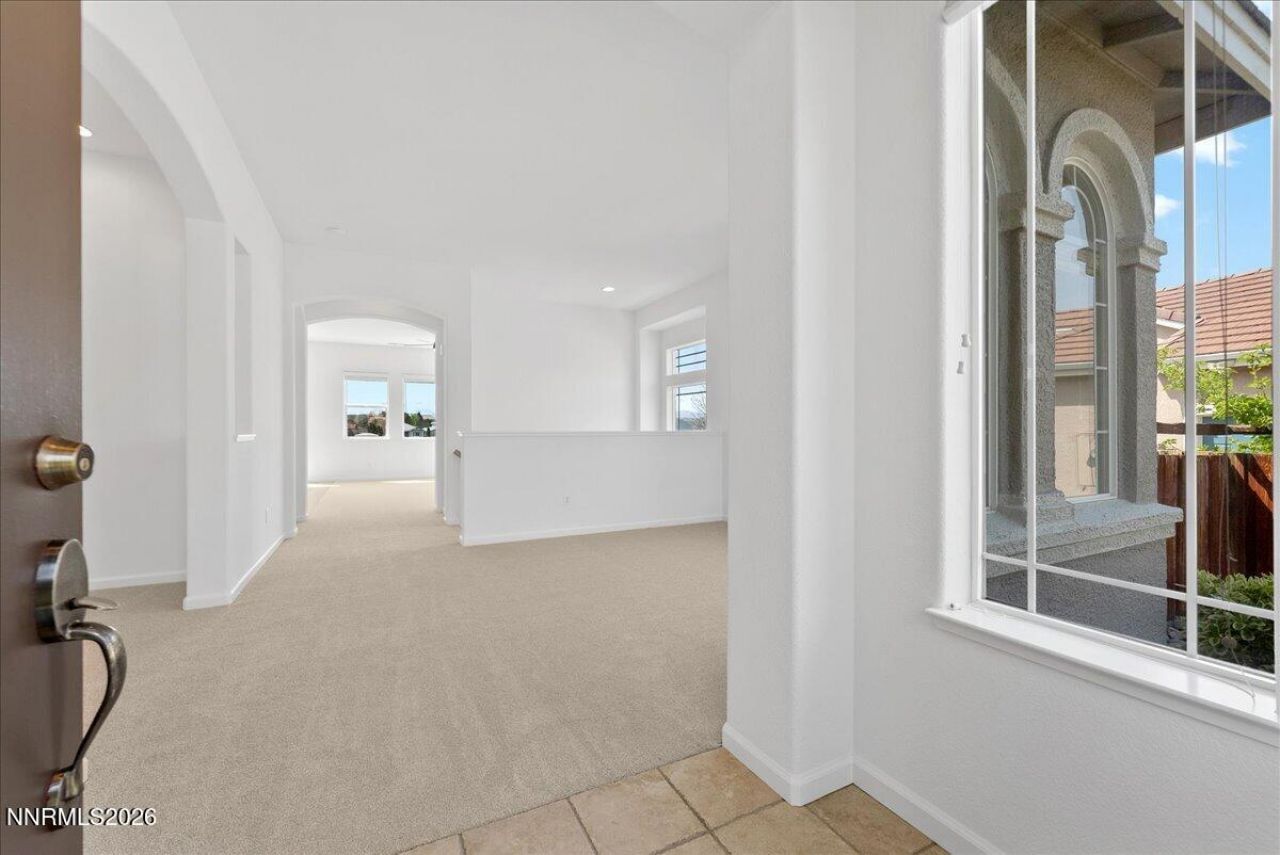 Elevate your lifestyle perched high above the Spanish Springs Valley adjacent to the sixth fairway of the Red Hawk Hills Golf Course, not subject to currently proposed development. Upon entering, you are greeted with TALL ceilings, BRIGHT spaces, and sweeping VIEWS. Enjoy a generously sized main level featuring formal dining, family room, centrally located kitchen with breakfast nook, plus Primary Suite. The west-facing deck running the full length of the home is an ideal setting to unwind and take in Northern Nevada's vivid sunsets over the surrounding mountains. The walk-out lower level includes a large recreation room plus three additional bedrooms, including a Secondary Primary Suite, suitable for guests or multi-generational living. A covered concrete patio leads to the backyard with mature landscaping, and a wide staircase connects to the driveway and three-car garage. With a versatile layout, stunning views, and room for your personal touch, this home offers exceptional value. Inquire about seller financing incentives and don't miss this rare opportunity to bring your life to the next level!